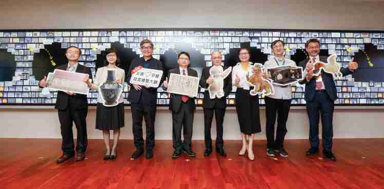 人生就是博携手创利空间为故宫建置的智慧文物互动导览墙及轮播墙,,,今日正式启用。。(左四:人生就是博新事业暨投资管理总部副总经理杨本豫、、右四:故宫博物院院长吴密察、、右三:太极影音董事长黄宝云)