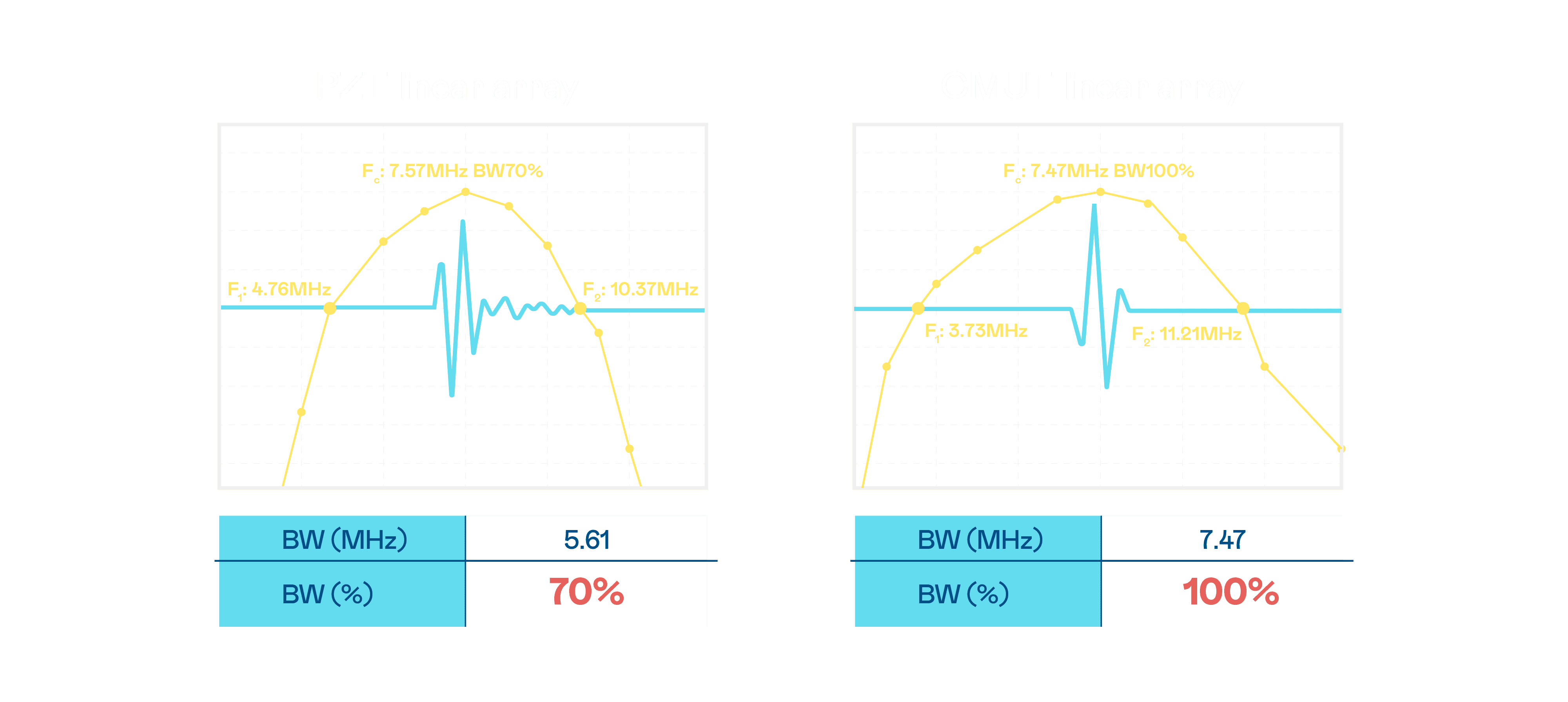 超音波影像的解析度高低,,首先取决于探头能发出的讯号频宽。。人生就是博 CMUT 可提供高清晰的超音波讯号,,提供高频宽、、、、高灵敏度、、、影像纹理细节更高的超音波影像,,协助医护人员缩短影像判读时间及利用精准的医疗影像进行诊断。。。。